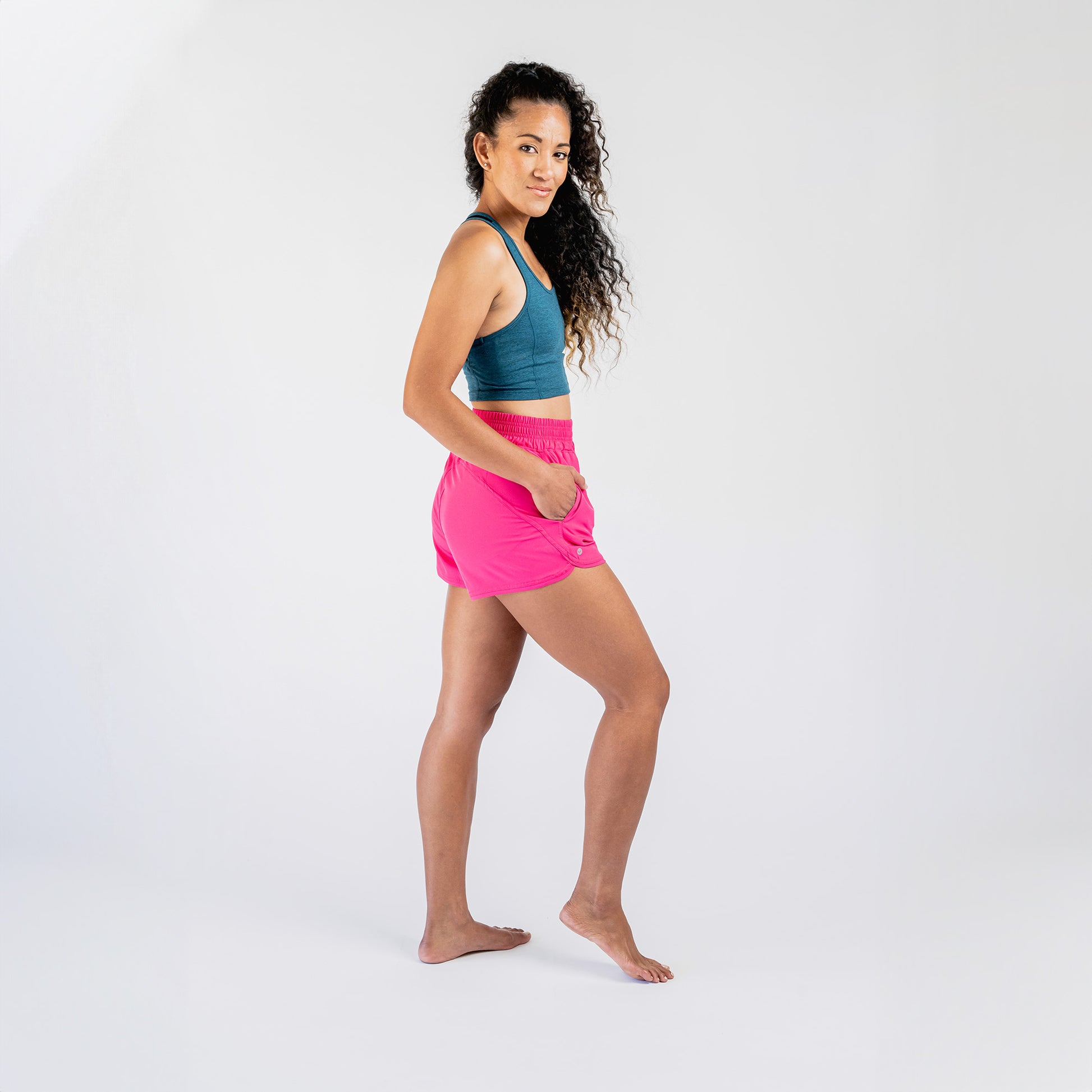 Meet our spin on the classic running short—designed specifically for tall women. Made from woven material with a casual cut and relaxed high-waist style. The perfect addition to your workout lineup. An instant favorite with all of our testers and models! Many women prefer to size down due to the stretchy, elastic waist and to keep them form hugging.